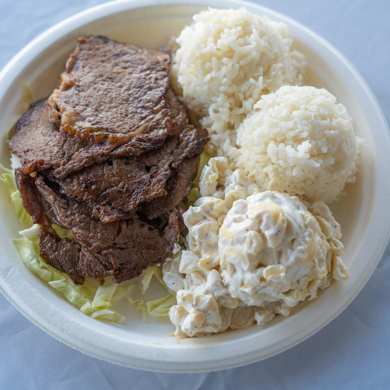 Includes one choice of meat, two eggs and two scoops of rice or toast. Select from BBQ Beef, BBQ Pork, Beef Cutlet, Pork Cutlet, Boneless Chicken, Hamburger Patty, Portuguese Sausage, Spam, Bacon and Wiener.